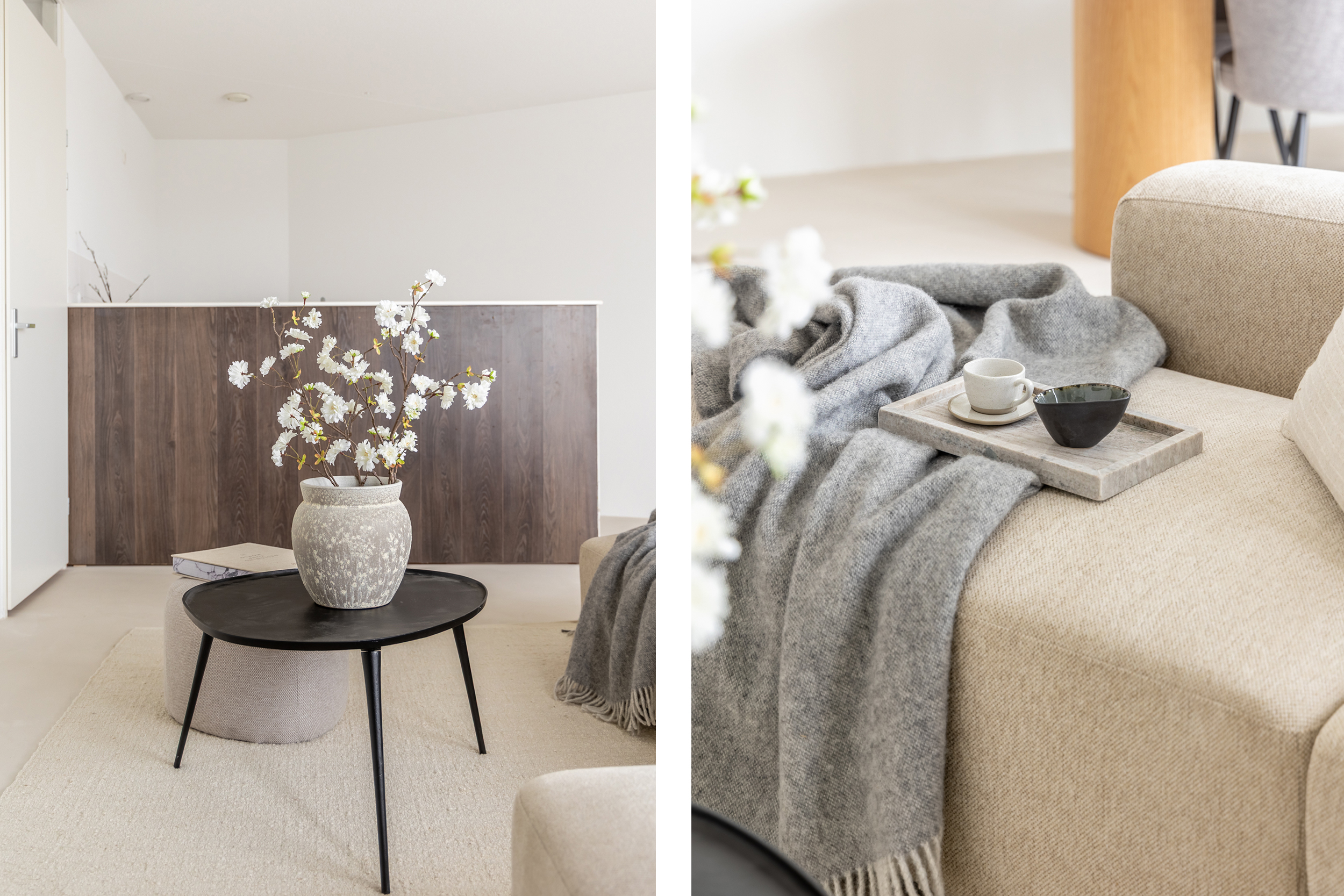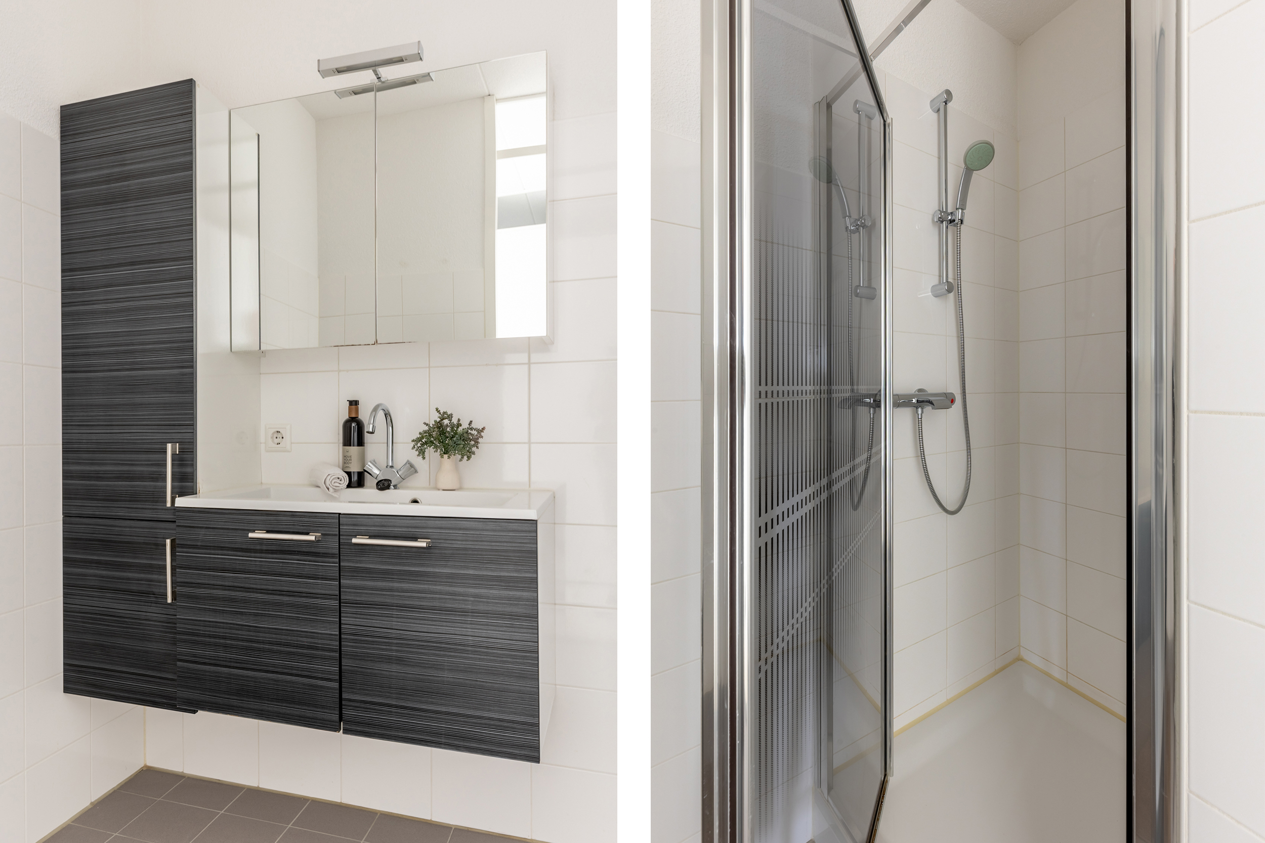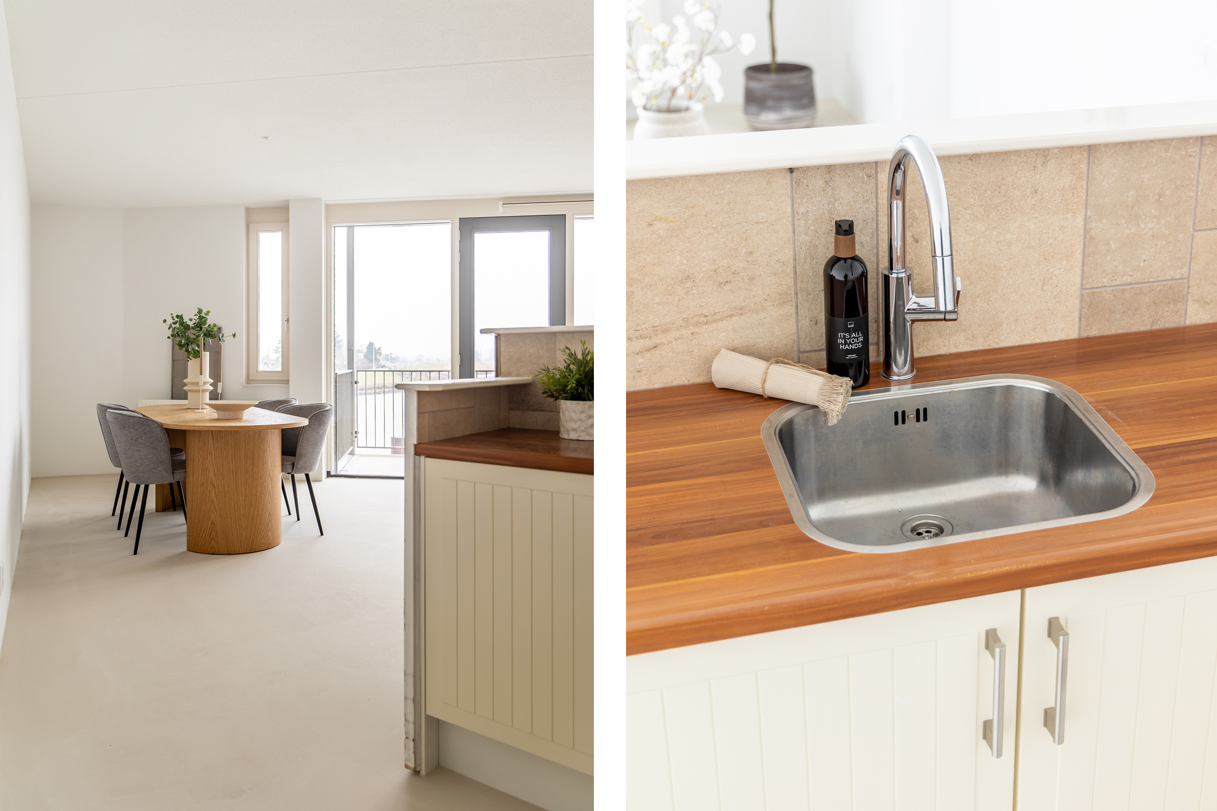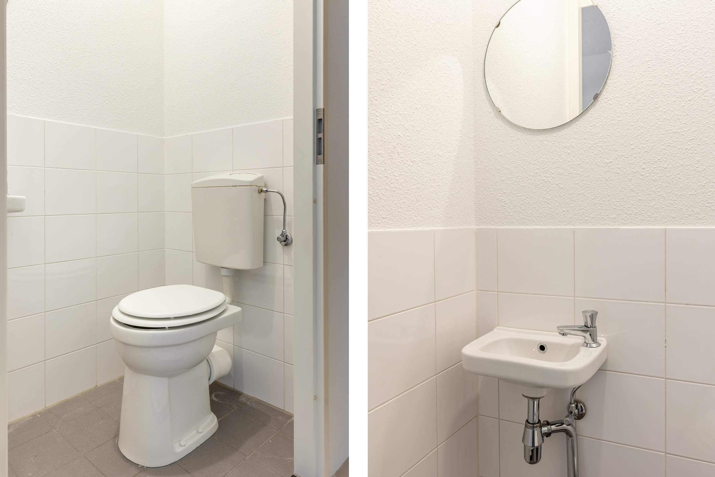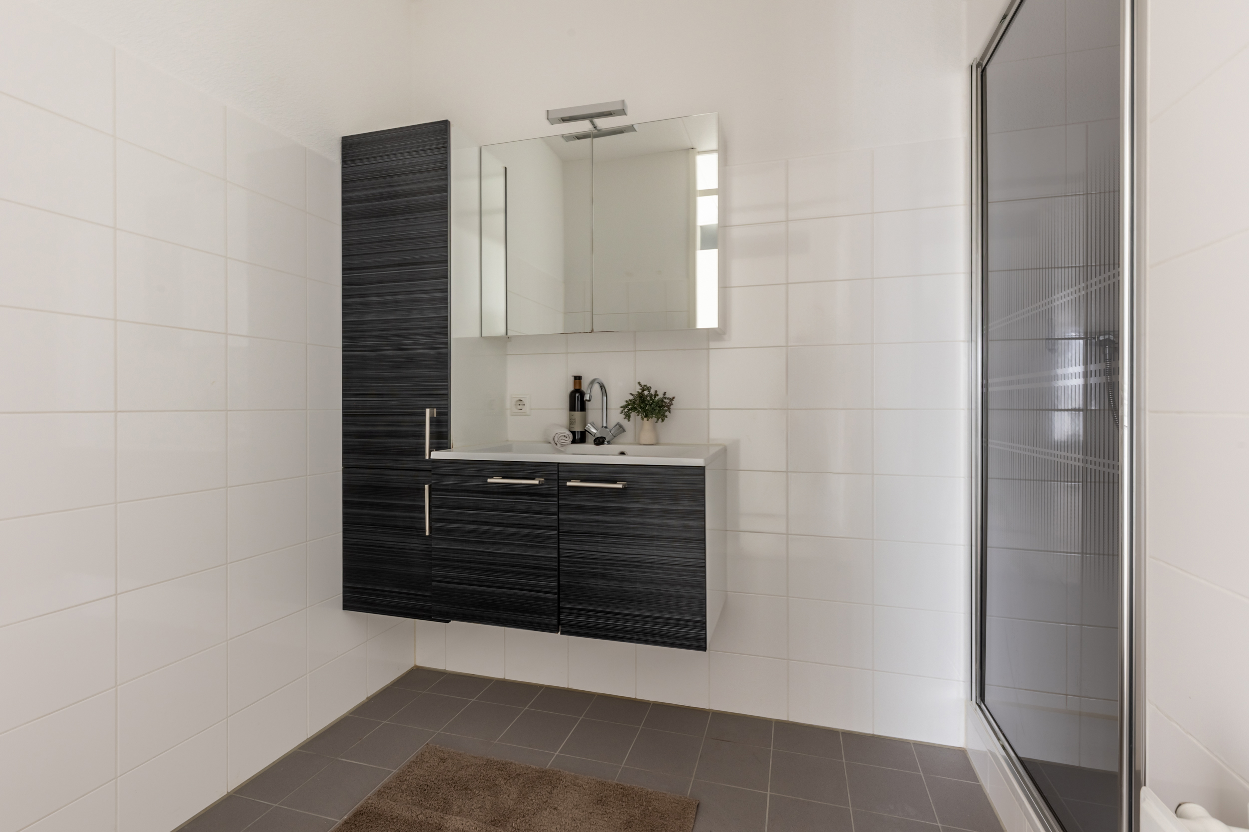 De woning is netjes bewoond geweest en is voorzien van strak afgewerkte wanden (schilderwerk 2026), een nieuwe afwerkvloer, een badkamer met een wastafelmeubel en douchecabine en een toilet met duoblok en fonteintje; beiden betegeld in een lichte kleurstelling. De open keuken in de woonkamer is eenvoudig uitgevoerd.