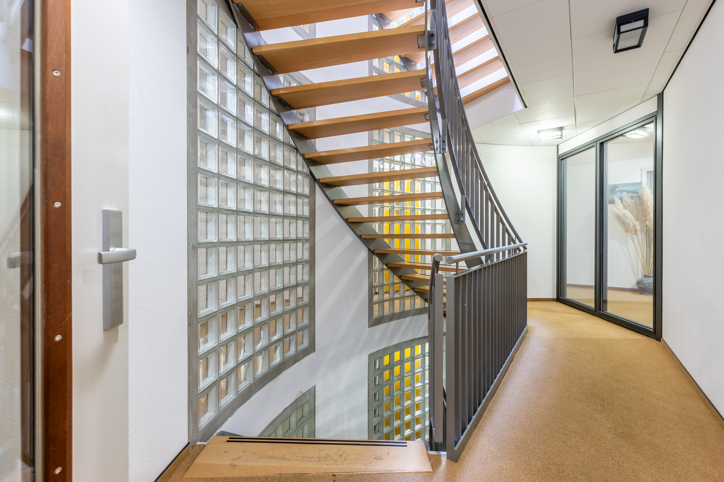 Via de lift en trap bereikbare overloop met toegang tot de berging.