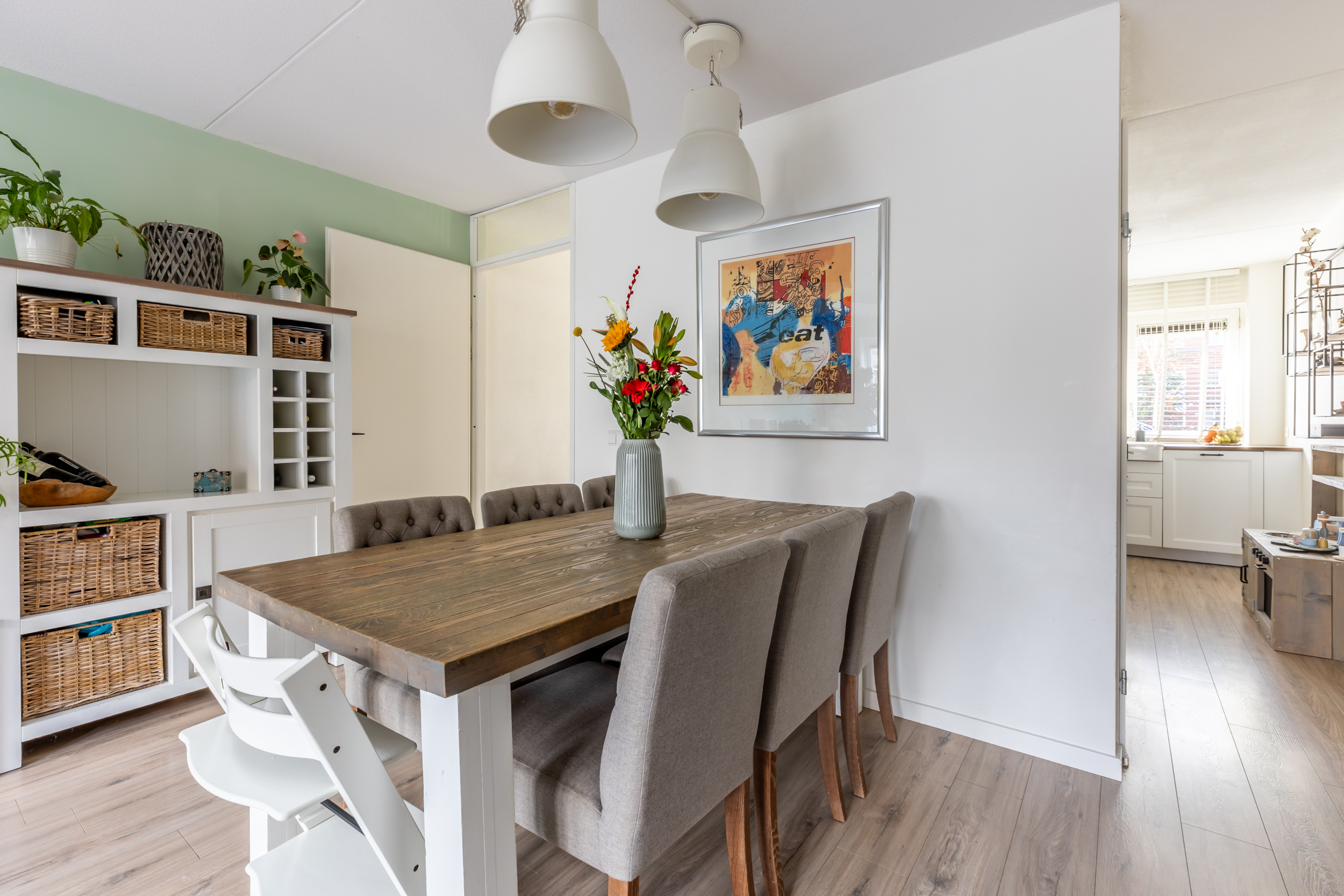 De woning is zeer verzorgd en strak afgewerkt, met gestucte wanden en een lichtgekleurde laminaatvloer die door de gehele woning is doorgelegd. De keuken in hoekopstelling is in 2022 vernieuwd en biedt veel bergruimte én is voorzien van diverse inbouwapparatuur. De moderne badkamer op de eerste verdieping beschikt over een bad, een inloopdouche, een wastafelmeubel met dubbele wastafels en een hangend closet. Het toilet op de begane grond in dezelfde kleurstelling heeft een hangend closet met fonteintje. Op de tweede verdieping is een multifunctionele ruimte met opstelling voor de wasmachine en droger. De verzorgde achtertuin heeft een ruime houten berging en een achterom. Door het type bouw, de ligging én grootte van de voor-, en achtertuin kunt u zowel genieten van de zon of de schaduw opzoeken! De woning wordt verwarmd en voorzien van warm water via stadsverwarming.