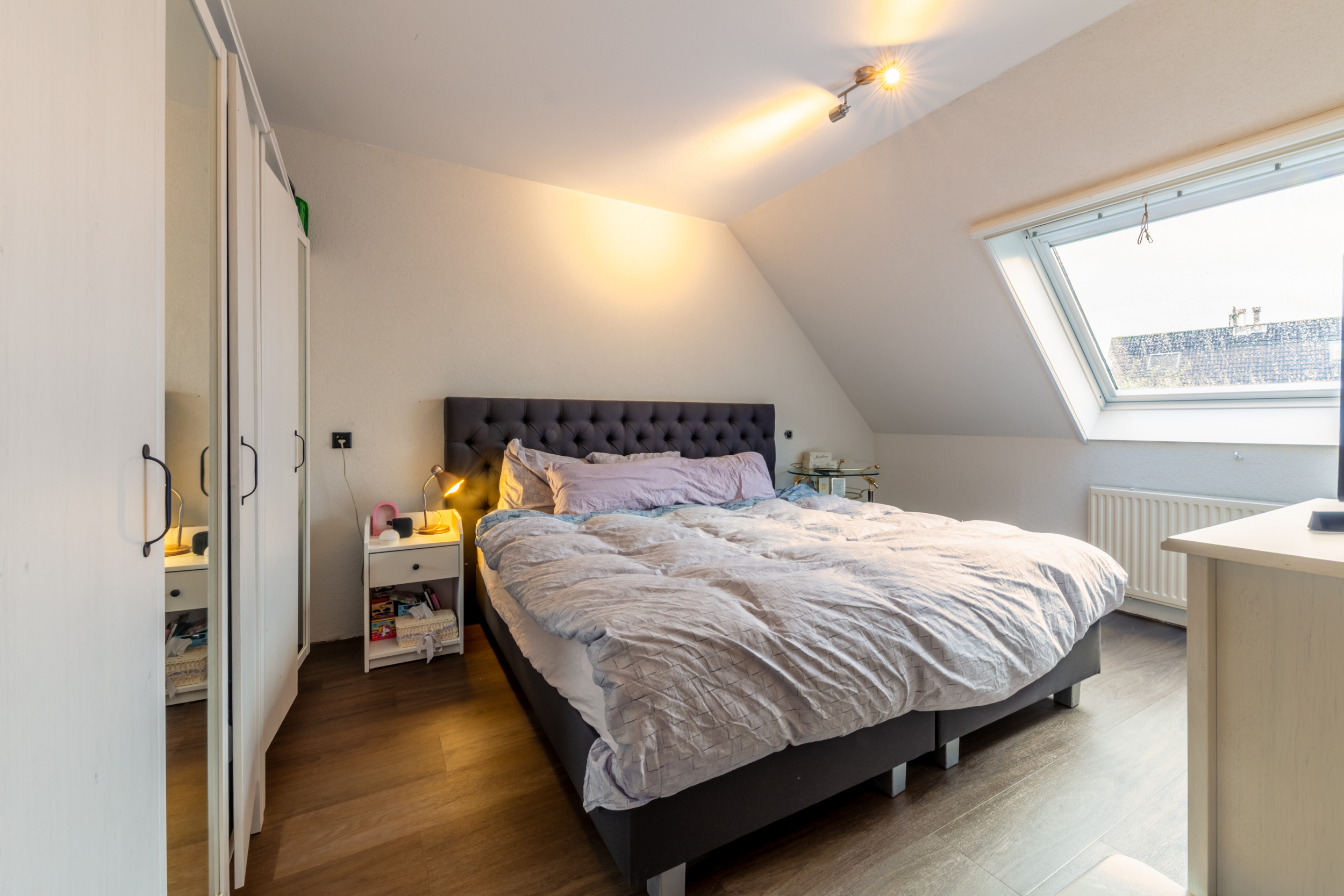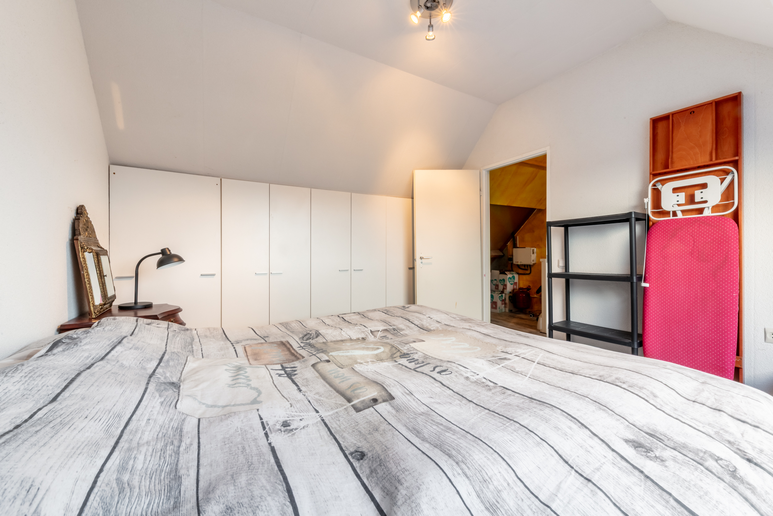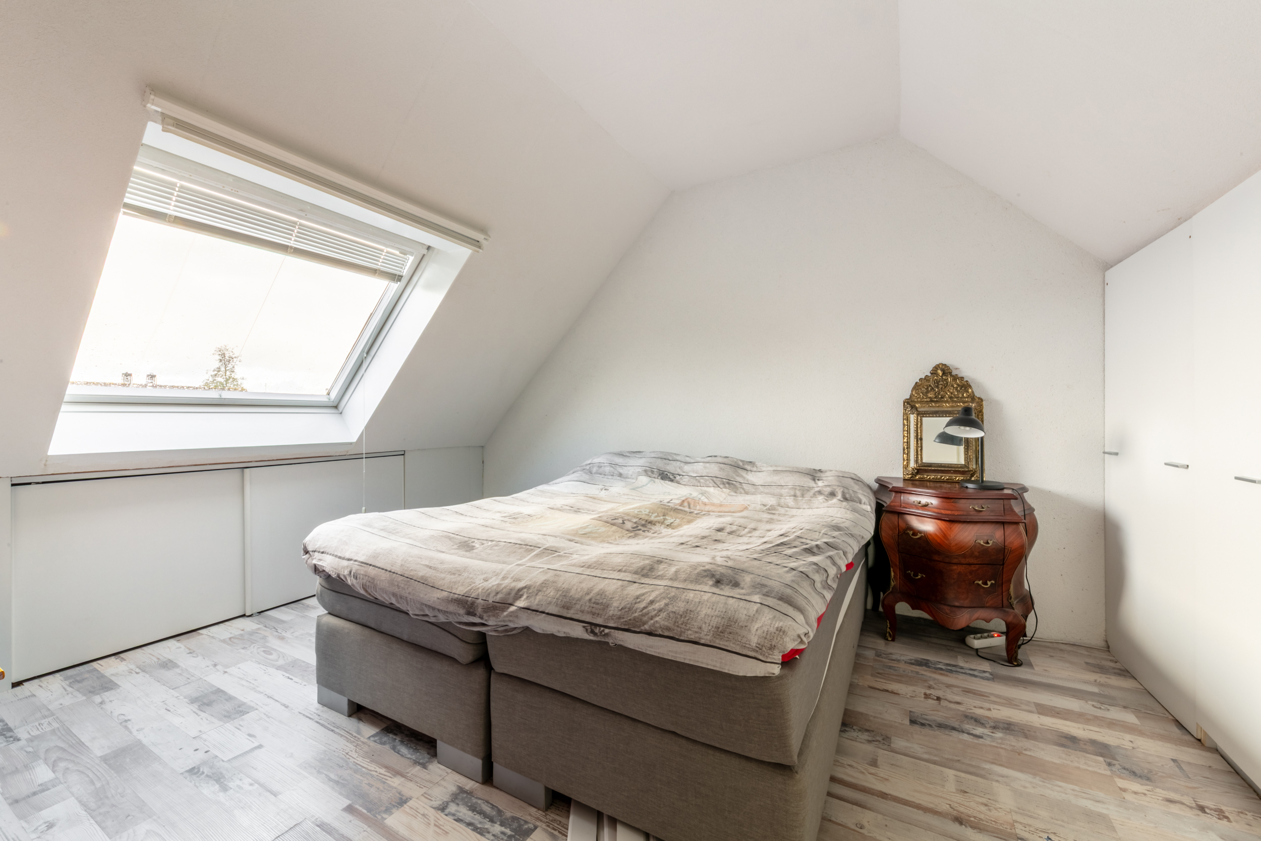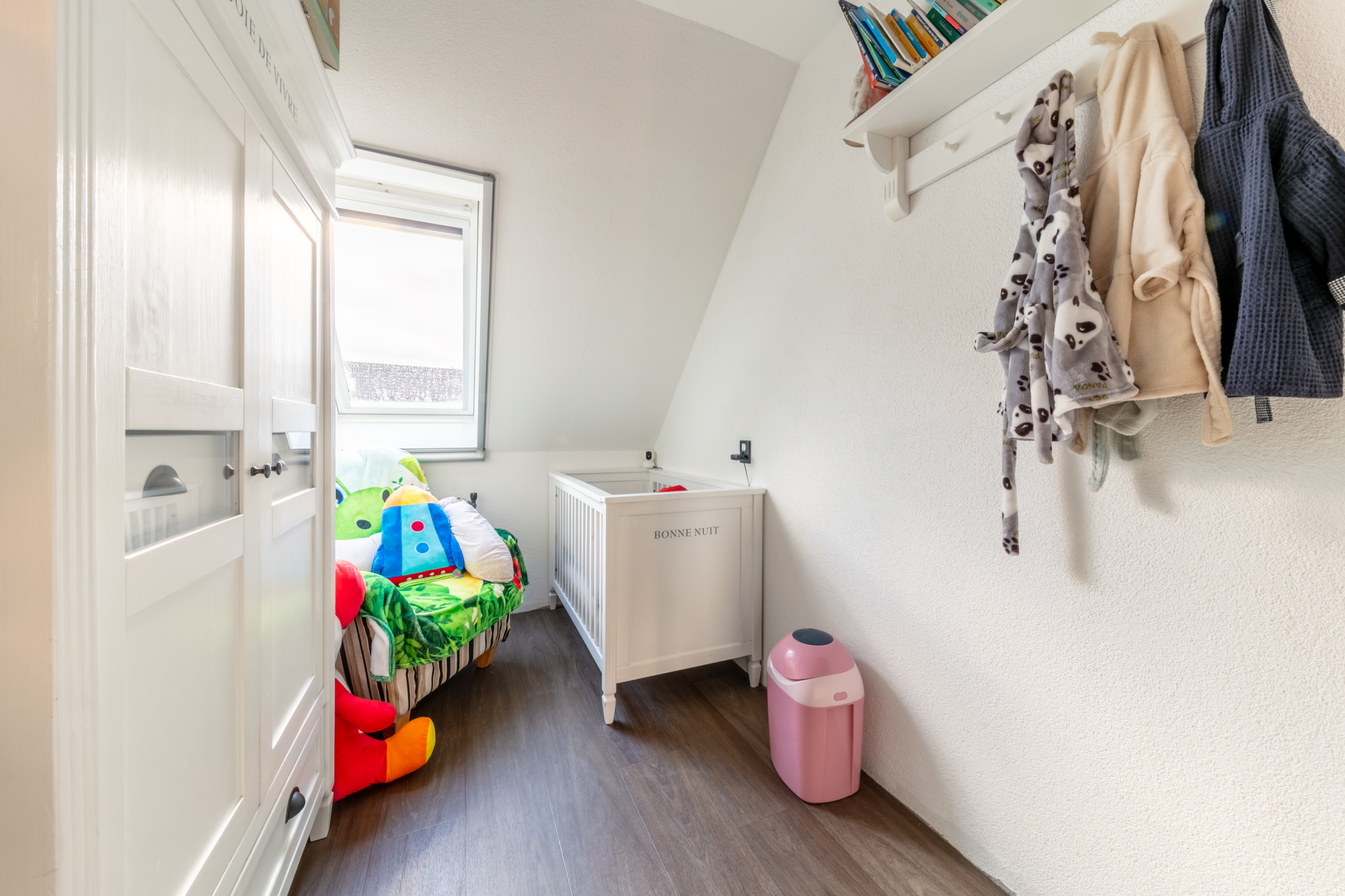 Recht tegenover de trap bevindt zich de vierde slaapkamer. Deze kamer beschikt over een groot dakraam aan de voorzijde en een brede inbouwkast aan de achterzijde. Een fijne, ruime kamer die zich uitstekend leent als slaapkamer, werkruimte of hobbykamer.