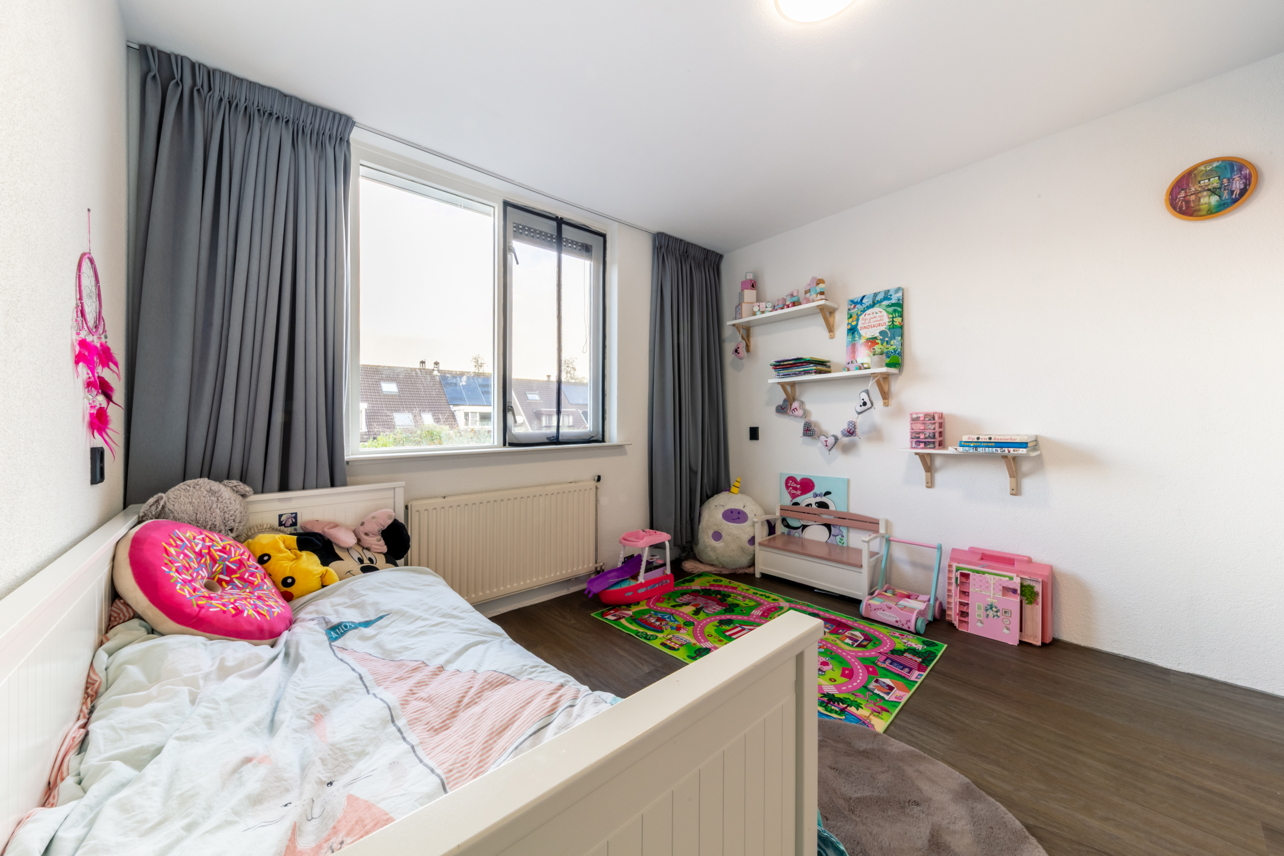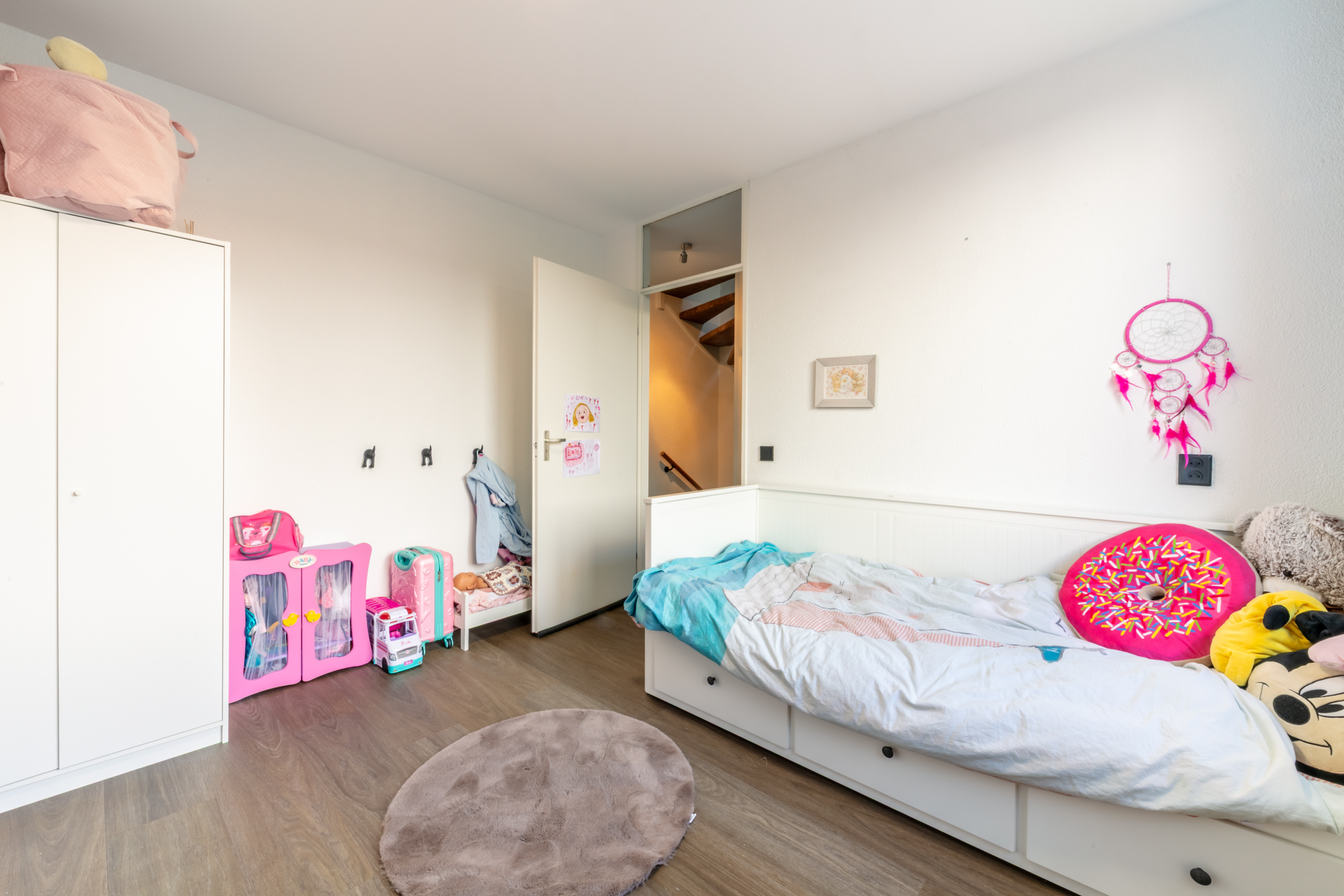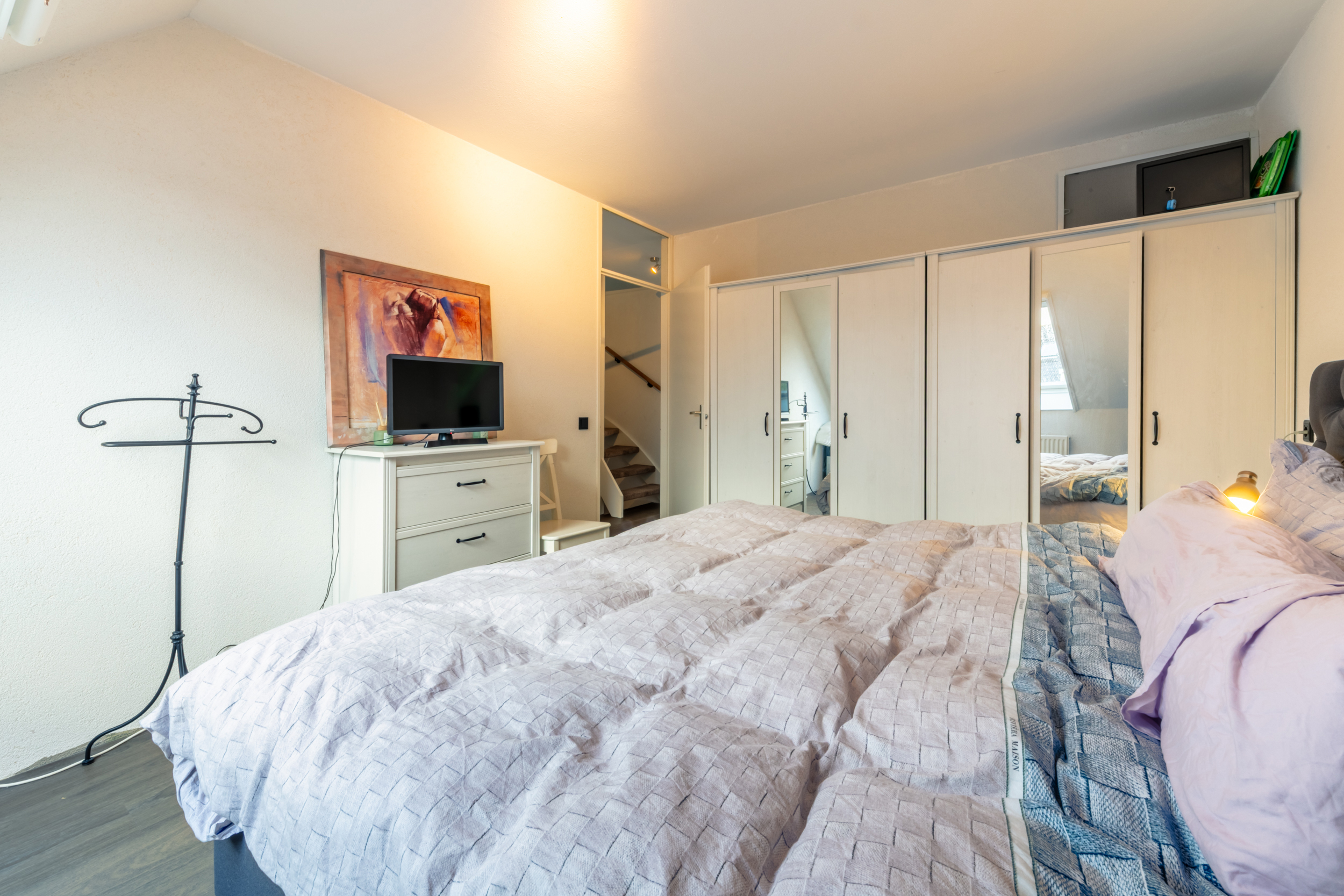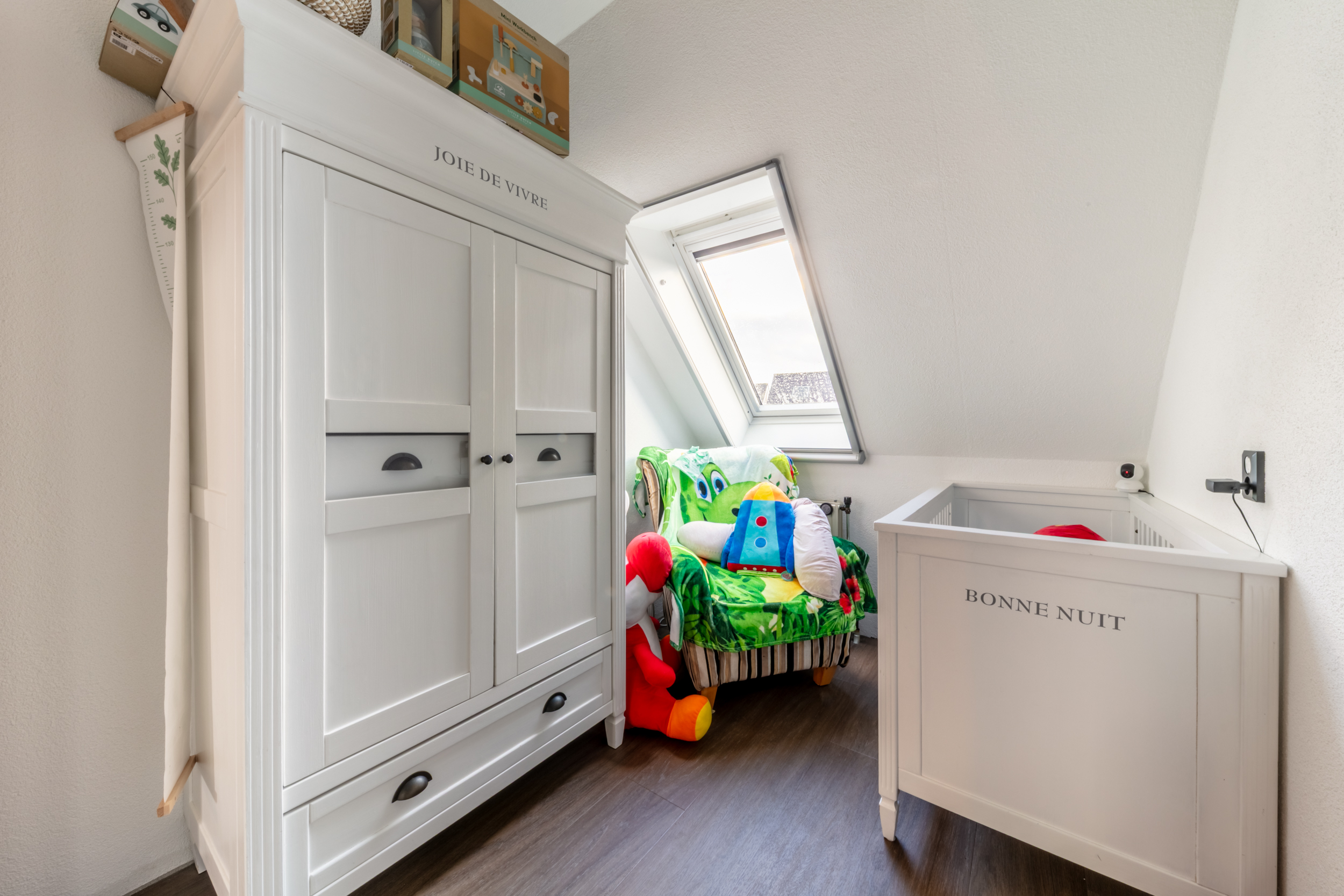 Recht tegenover de trap bevindt zich de vierde slaapkamer. Deze kamer beschikt over een groot dakraam aan de voorzijde en een brede inbouwkast aan de achterzijde. Een fijne, ruime kamer die zich uitstekend leent als slaapkamer, werkruimte of hobbykamer.