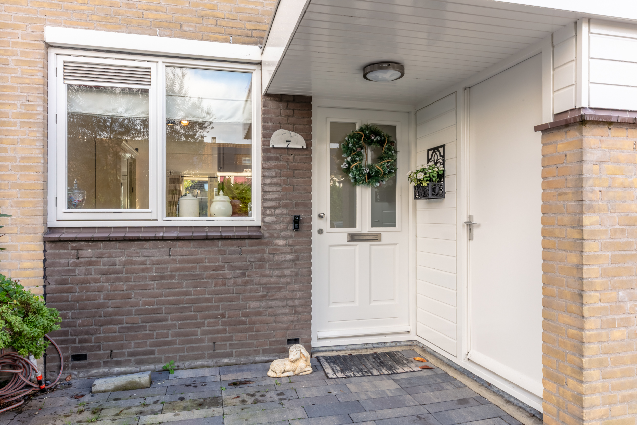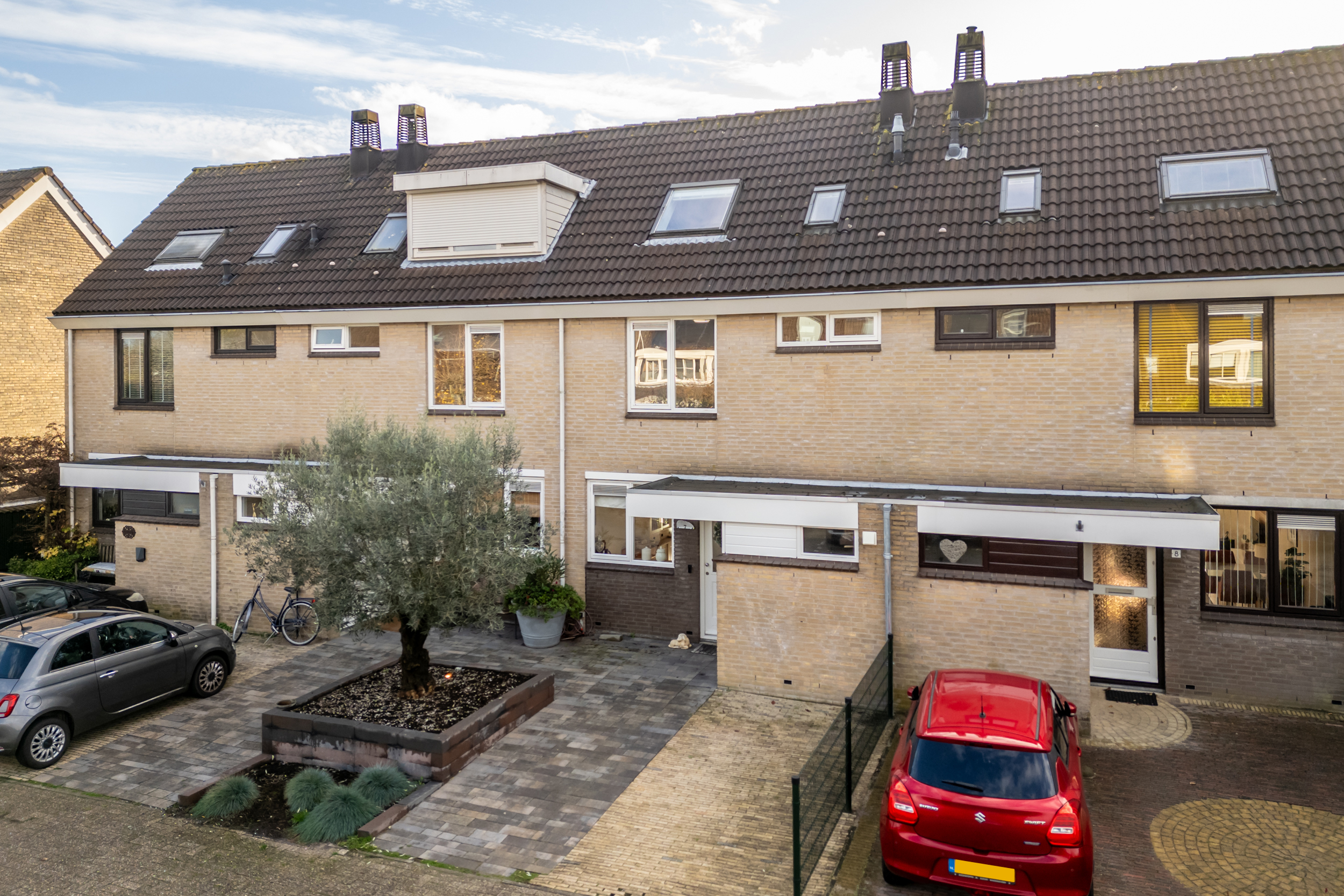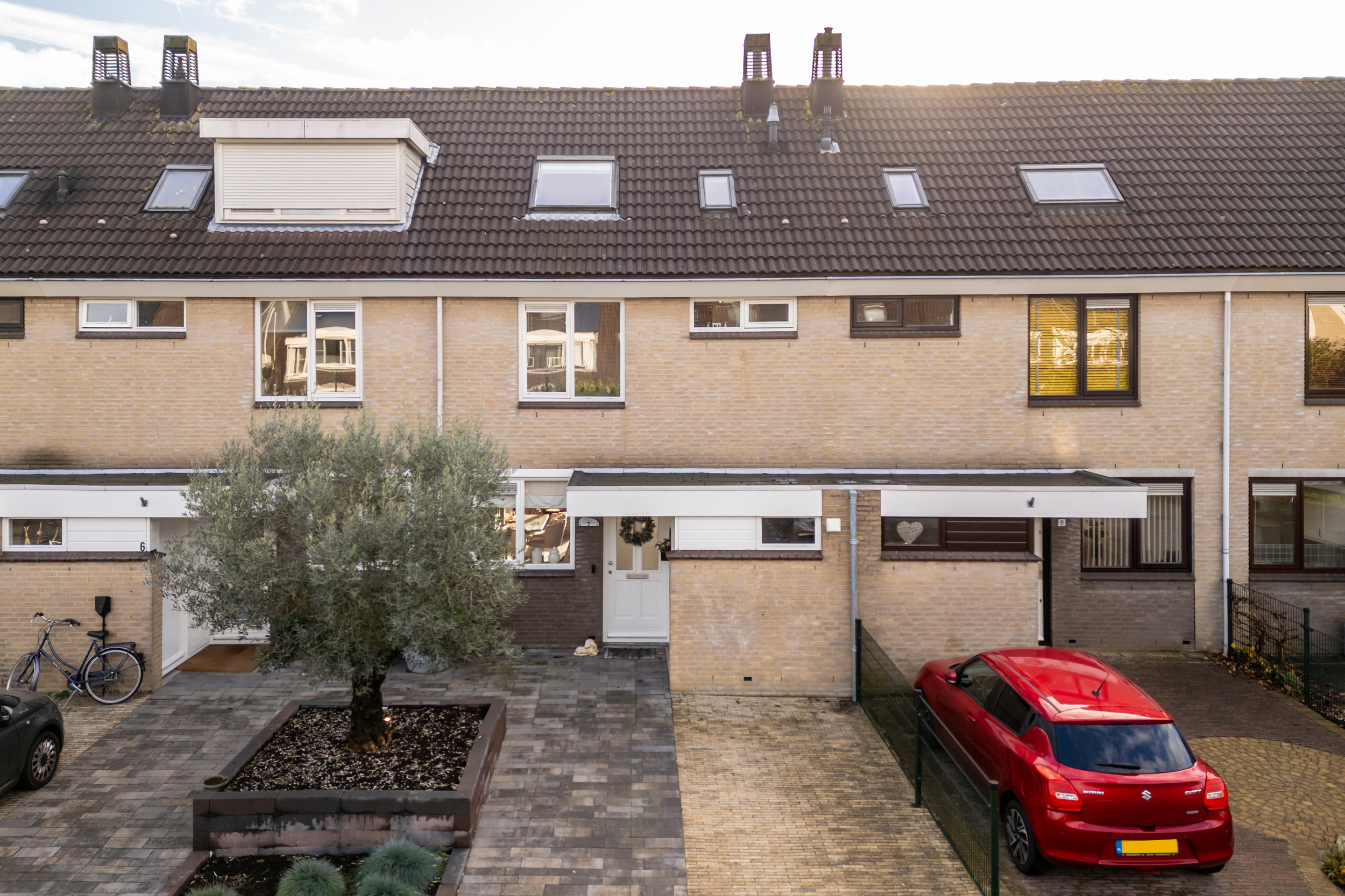 De voortuin wordt op charmante wijze gesierd door een prachtige, grote olijfboom die zowel in de tuin van de buren als die van deze woning staat. Daarnaast biedt de voortuin voldoende ruimte om een auto op eigen terrein te parkeren. Ondanks de parkeerplek blijft er meer dan genoeg bewegingsruimte over om met een fiets aan de hand gemakkelijk de berging te bereiken.