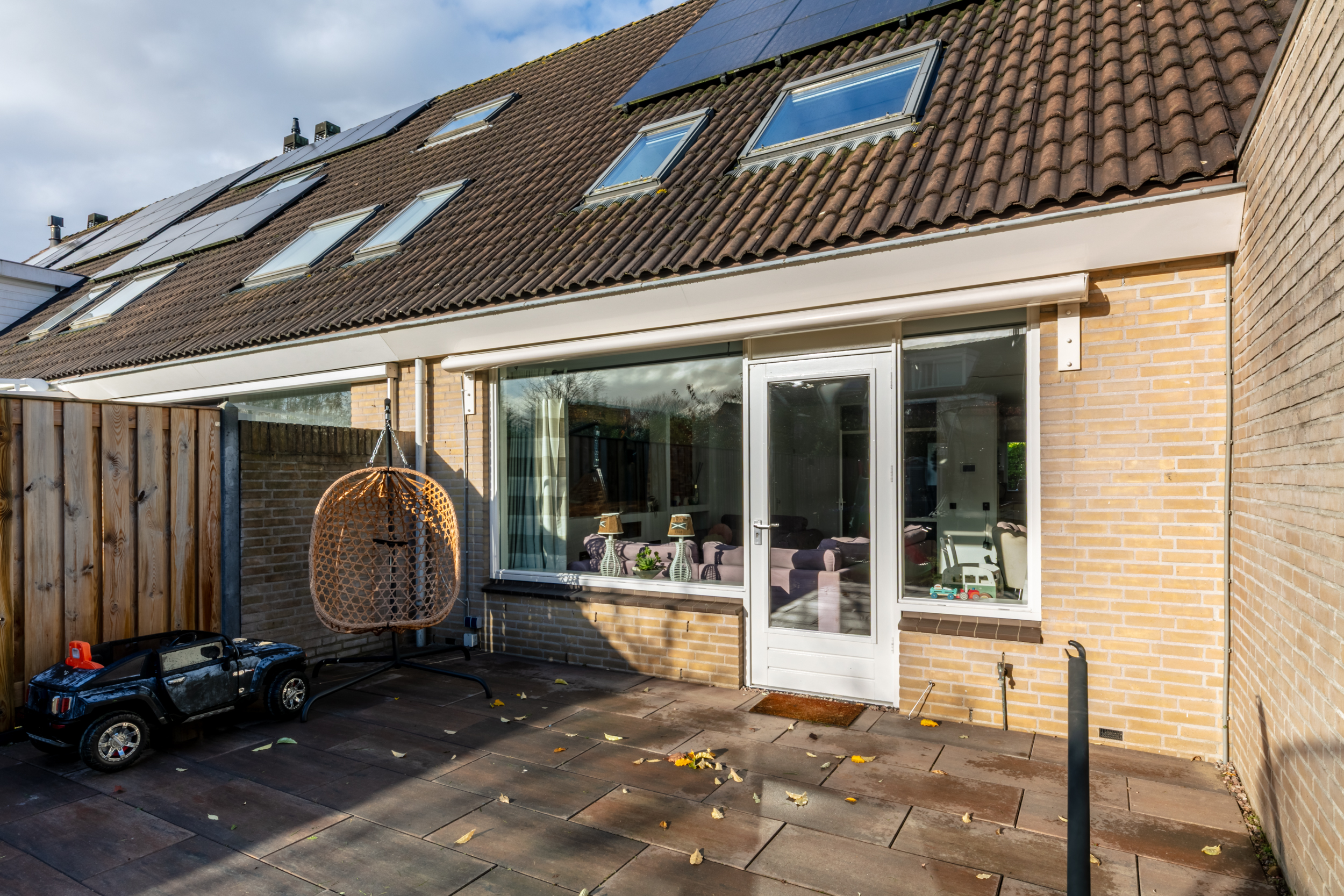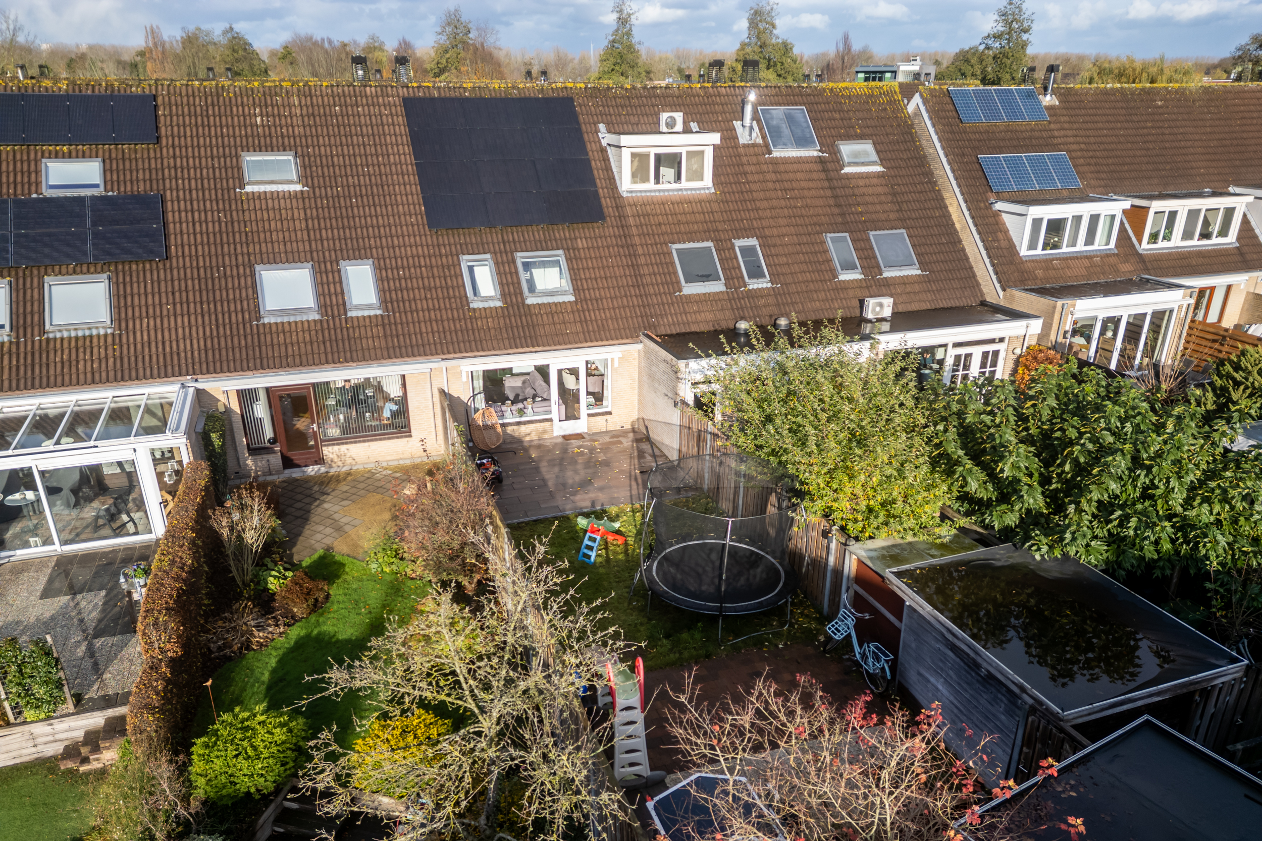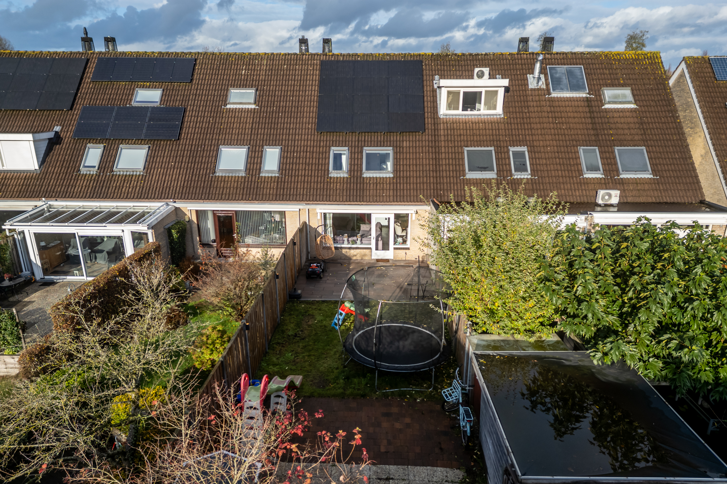 De achtertuin is volledig omheind met een houten erfafscheiding en beschikt links achterin de tuin, over een deur naar het achterpad. Direct aan de achtergevel is een verzorgd stenen terras gerealiseerd, perfect voor een lounge- of eethoek. Daarachter ligt een groen grasveld, ideaal voor spelende kinderen of om heerlijk van de zon te genieten. Dankzij de ligging kunt u hier de hele dag door genieten van zonlicht.